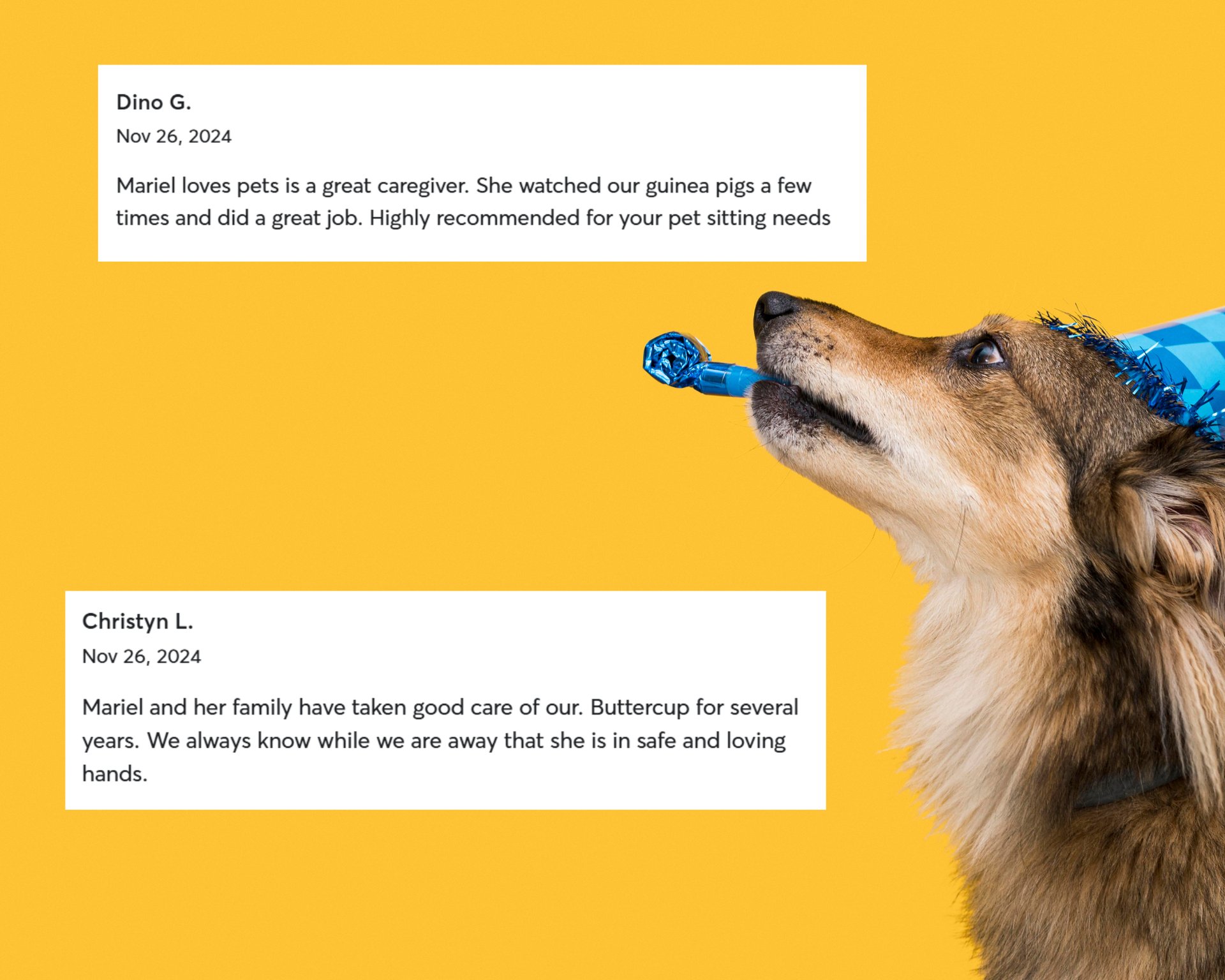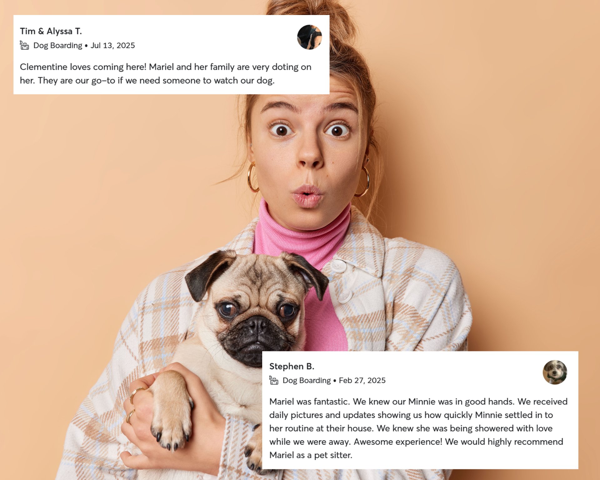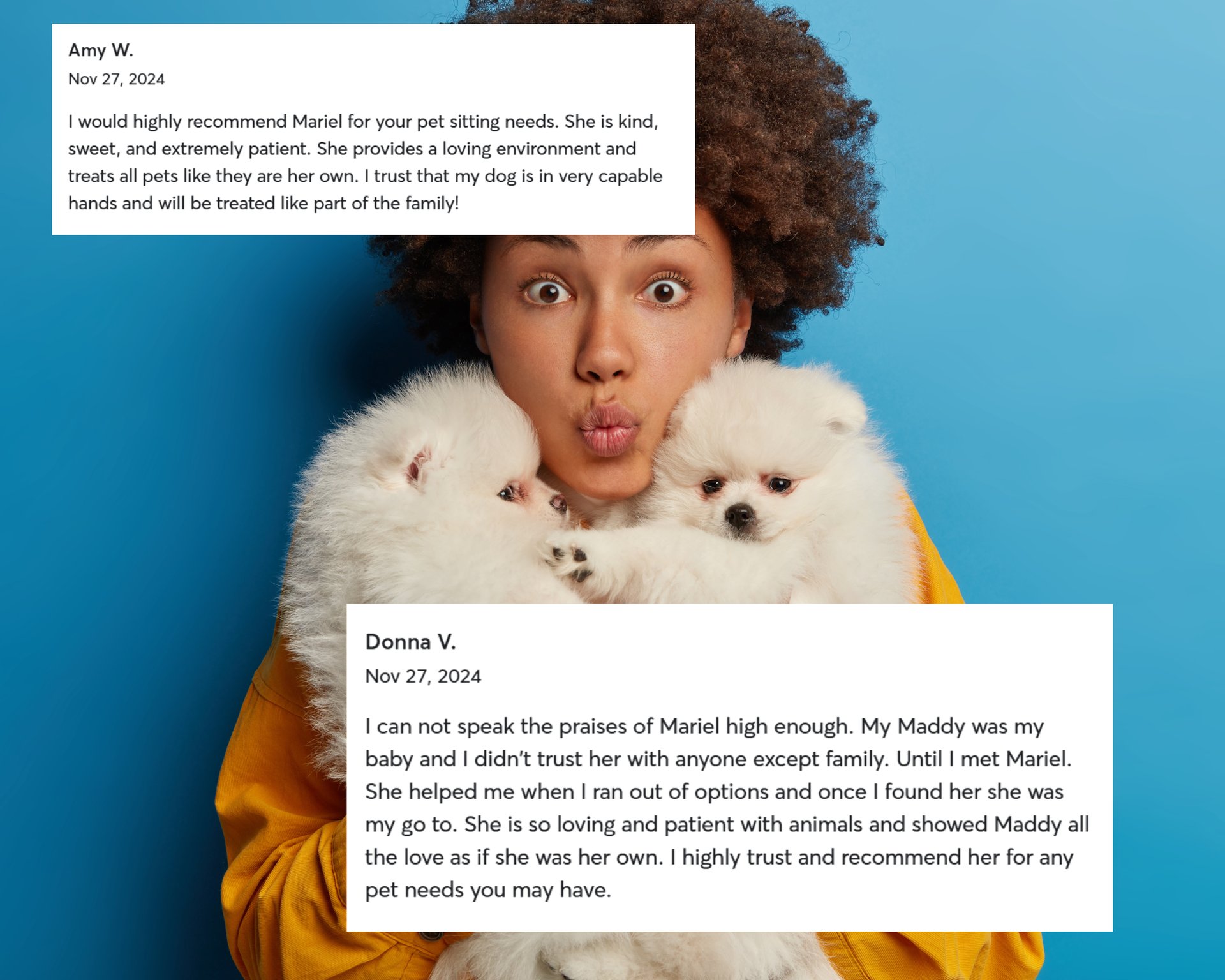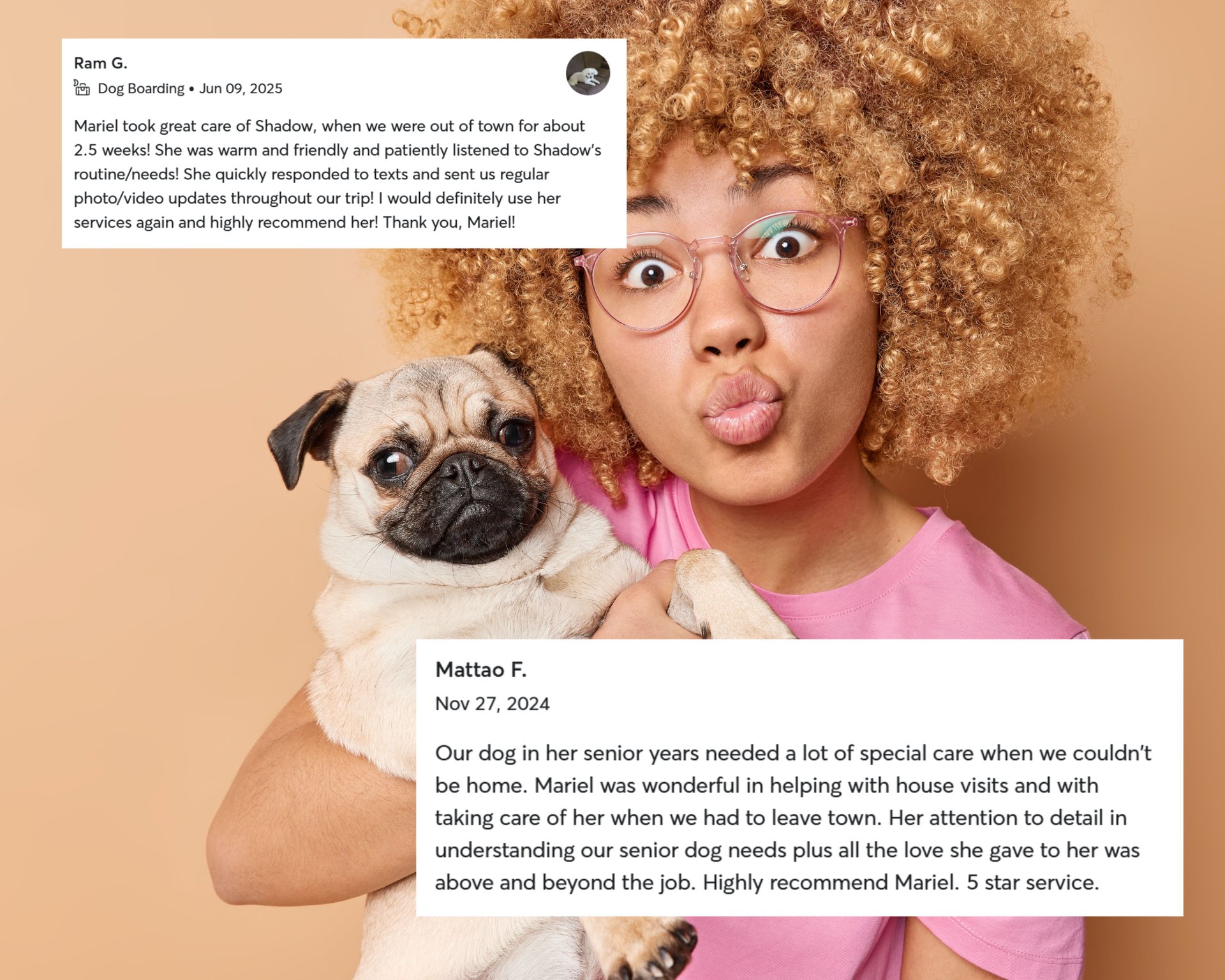 For Boarding Mariel has a Star Sitter status in Burke, VA. This program highlights responsive sitters who deliver highly rated care, have a history of listing accurate availability and preferences, making it easier for pet owners to find the best care for their dogs.